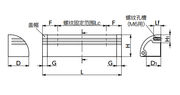 在整个长度上加工有M6用的螺纹孔槽。可在螺纹固定范围Lc的任意位置安装螺丝,因此可自由选择安装尺寸。